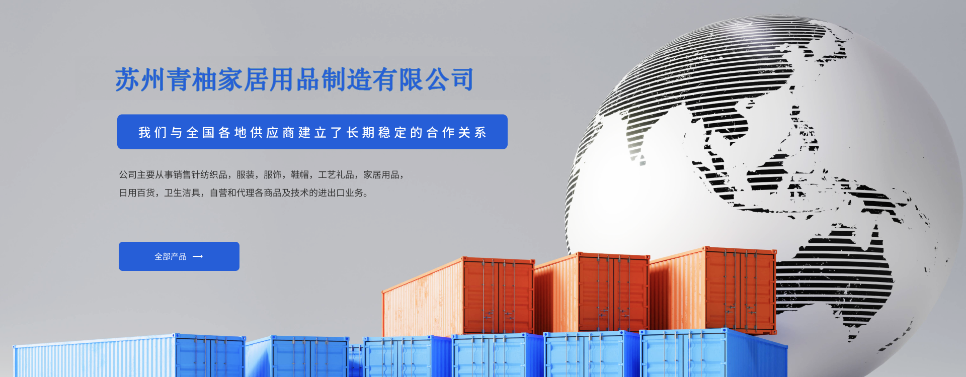 蘇州青柚家居用品制造有限公司,主要從事銷售針紡織品,服裝,服飾,鞋帽,工藝禮品,家居用品,日用百貨,衛(wèi)生潔具,自營和代理各商品及技術(shù)的進出口業(yè)務(wù)。公司與全國各地供應(yīng)商建立了長期穩(wěn)定的合作關(guān)系。為了提供更好的品質(zhì)與服務(wù),旗下設(shè)立了倉儲,檢品,檢驗,包裝為一體的公司,確保質(zhì)量的同時能夠按時交貨。